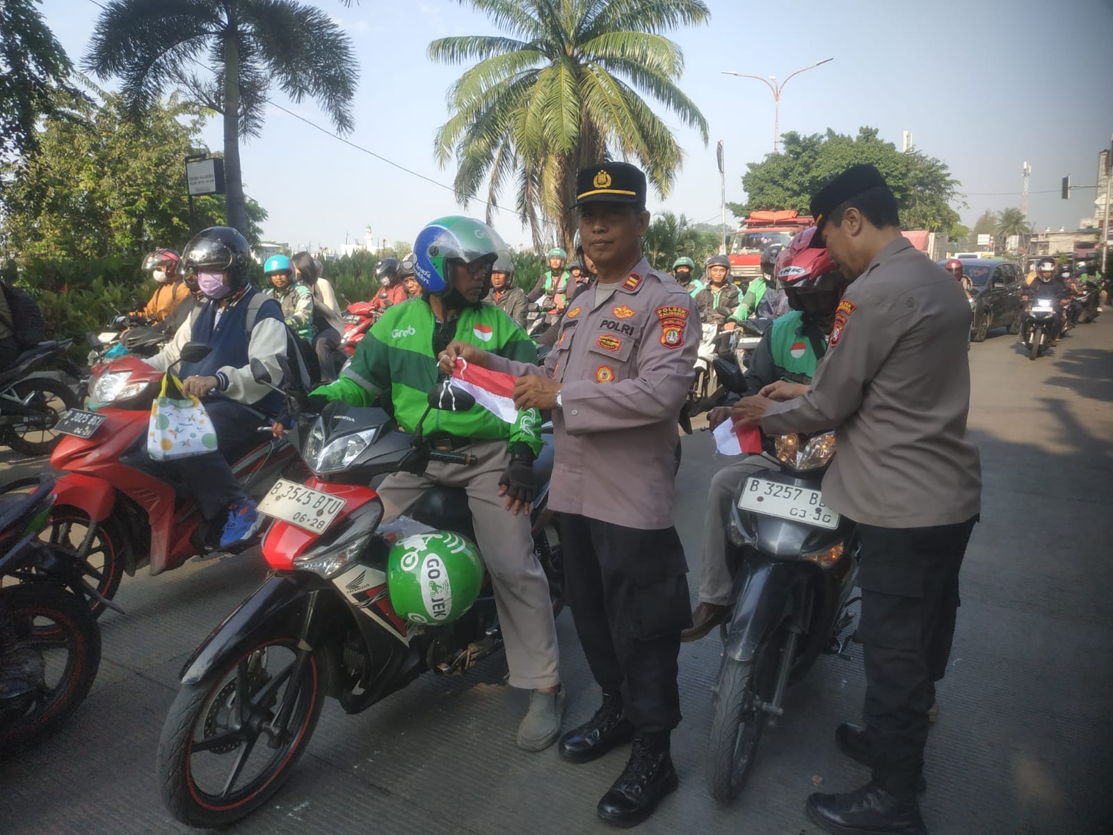 Ajak Warga Kibarkan Merah Putih, Polsek Kalideres Sebar Ratusan Bendera