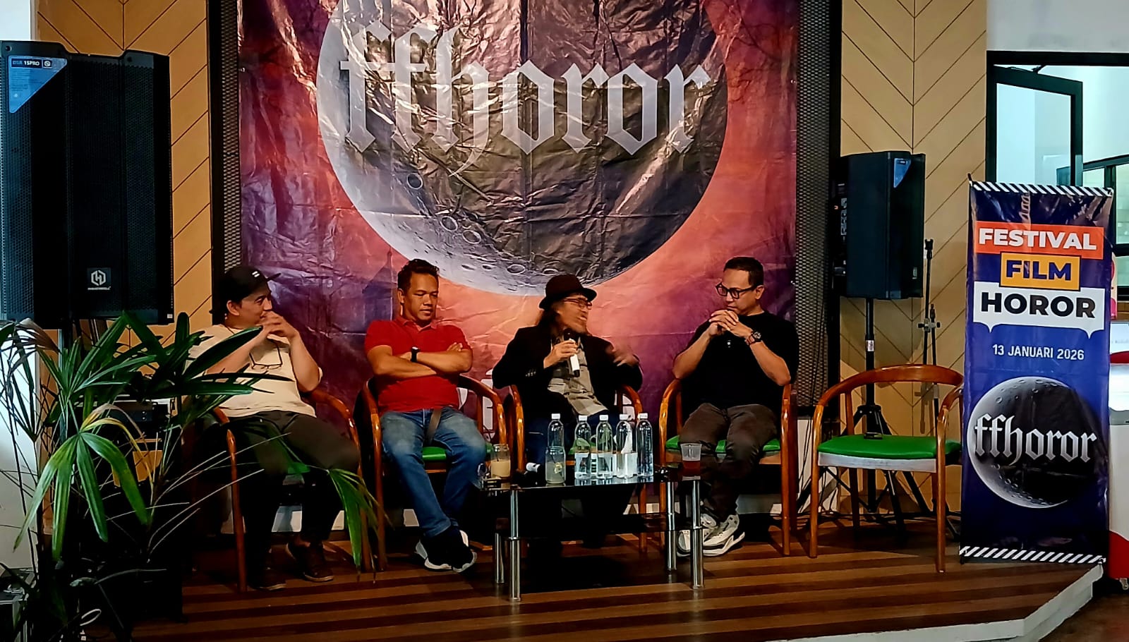 Diskusi mengangkat tema “Horor, Sensor, Promosi Film Horor” dengan menghadirkan sejumlah narasumber, yakni Akhlis Suryapati (penggiat dan kritikus film), Ryan Fadilah (editor), dan Rama Djunarko (co-sutradara), serta dipandu moderator Irfan Handoko,Jakarta,13 April 2026.