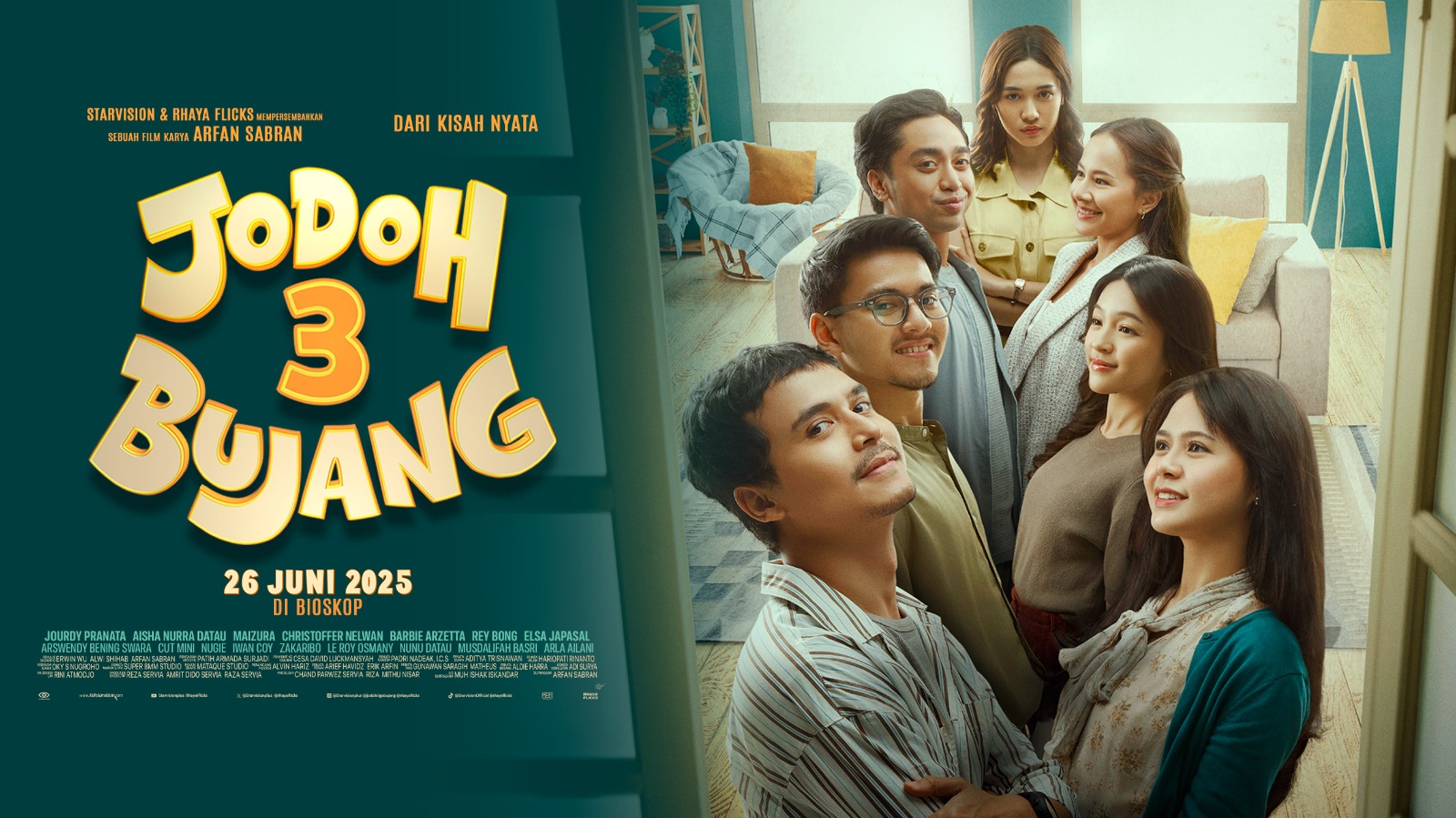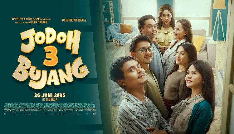 Rumah produksi Starvision bersama Rhaya Flicks resmi merilis trailer dan poster film terbaru mereka berjudul “Jodoh 3 Bujang”, sebuah film drama komedi keluarga yang diangkat dari kisah nyata dan digarap oleh sutradara asal Makassar, Arfan Sabran. Film ini dijadwalkan tayang serentak di bioskop mulai 26 Juni 2025, bertepatan dengan masa libur sekolah.