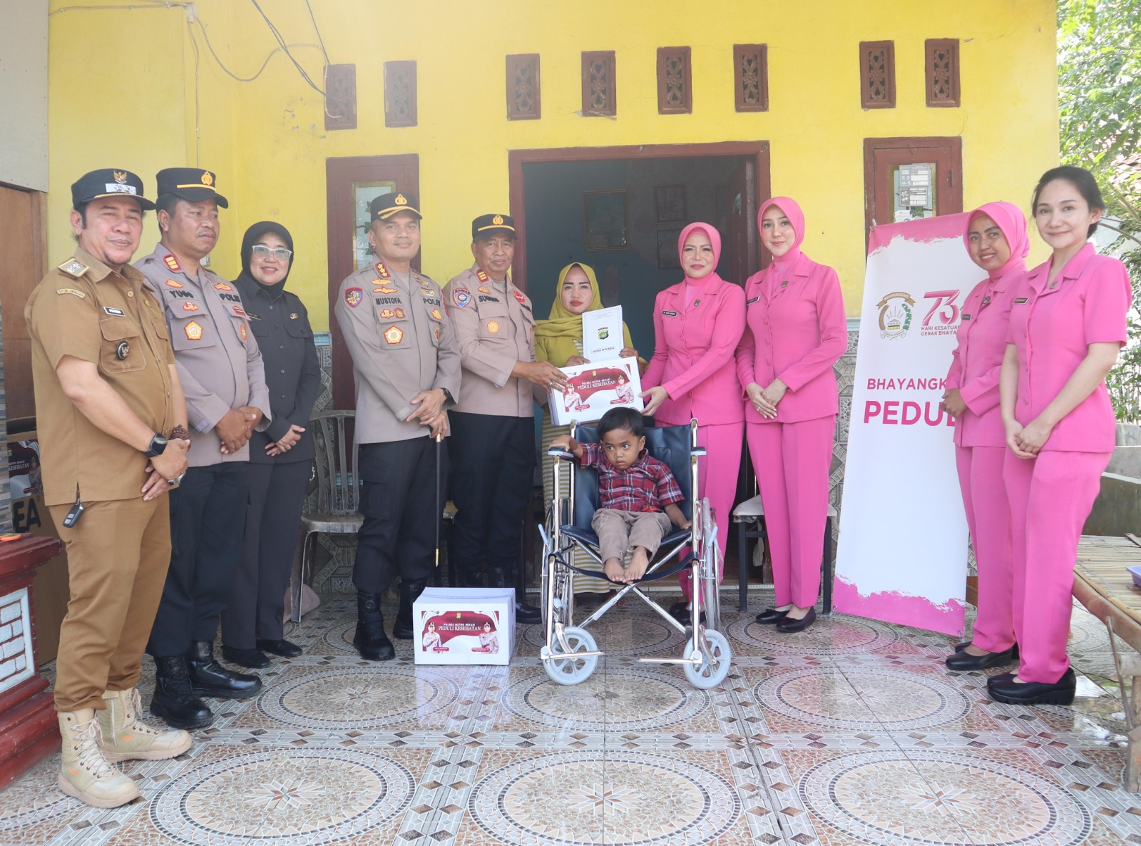Hadir dan Peduli, Kapolres Metro Bekasi dan Ketua Bhayangkari Cabang Metro Bekasi Serahkan Kursi Roda untuk Dua Warga Disabilitas di Tambelang