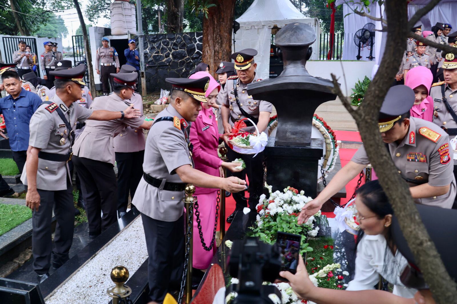 Kapolda Metro Jaya beserta jajaran pejabat utama dan perwakilan Bhayangkari Daerah Metro Jaya turut serta dalam prosesi tersebut, menunjukkan penghormatan yang mendalam terhadap para pendahulu institusi Polri.