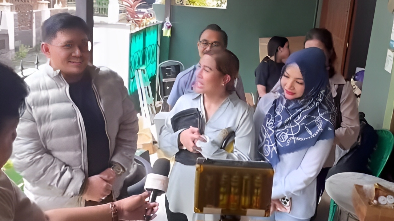 Ratu Meta didampingi kuasa hukumnya machi achmad dan Roro fitria Rabu (7/05/2025) mendatangi kediaman suami Ratu Meta dibilangan Jakarta Timur.