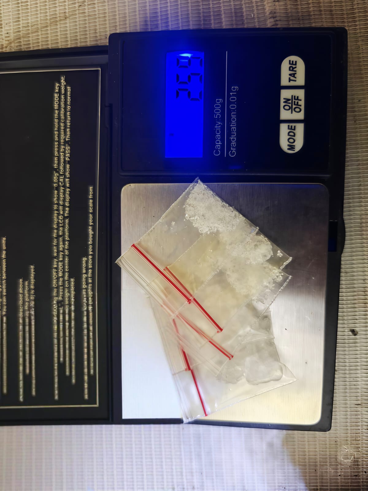 Empat orang yang diamankan masing-masing berinisial Z.M. (43), M.R. (25), M.A. (23), dan M.F. (24). Berdasarkan pemeriksaan awal, Z.M. diduga sebagai pemilik barang, sementara tiga lainnya diduga sebagai pengguna. Polisi juga menyita lima unit telepon genggam, tiga dompet, satu alat hisap (bong), dan satu korek api modifikasi. Hasil uji laboratorium sementara menunjukkan barang bukti positif mengandung methamphetamine.