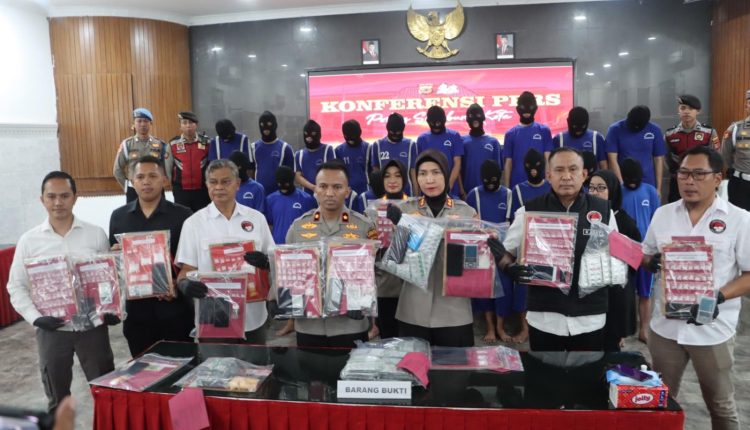 “Ke-19 terduga pelaku yang telah diamankan adalah J.L (50), C.A. (39), A.S. (21), R.A. (19), R.P. (21), D.T. (32), D.R. (40), R.N. (25), S.F. (36) H.J. (25 ), O.N. (29), Y.J. (35) dan R.S. (25) terlibat dalam kasus peredaran narkoba jenis Sabu dan Ganja. Sedangkan V.T. (28), F.Y. (22), M.A. (22), A.R. (30), D.W. (29), dan A.M. (29) terlibat dalam kasus peredaran obat keras terbatas,” lanjut Kombes Hendra.